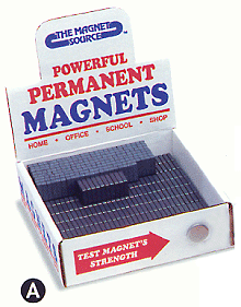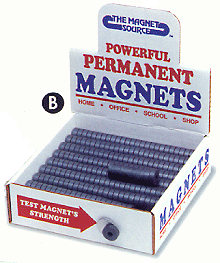 Display contains 500 magnets, consisting of 300 CB40 (1"L x 0.75"W x 0.196"Th x 0.196" dia) block magnets with a center hole and 200 CB3 (0.8785" L x 0.227" W x 0.187" Th ) solid block magnets.