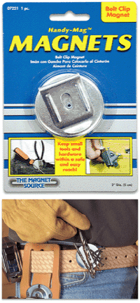 The Handy Magnet can be used to hold small hardware - nails, screws, wire nuts and more - securely and conveniently. Sturdy clip easily attaches magnet to belt or pocket. Great for mechanics, carpenters, electricians and do-it-yourselfers. Available in an attractive counter display (click here).